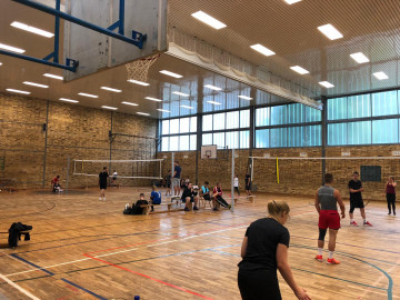 Eigentlich sollte das von unserem Jugendtrainer Christoph Sommer organisierte und von verschiedenen Jugendinitiativen wie Stadtmensch, Altenburg am Meer, Mach Halt und Fack unterstützte Turnier für Jugend-, Hobby- und Freizeitmannschaften auf dem Beachplatz stattfinden. Nachdem es im Vorjahr guten Anklang fand, hat es jetzt einen festen Platz in unserem Beach-Kalender eingenommen. Alle 12 gemeldeten Teams, jeweils aus 3 Spielern bestehend waren erschienen, eine Mannschaft sogar aus Erfurt, aber wegen Dauerregen musste kurzfristig in die Halle verlegt werden. Fleißige Helfer klebten Linien auf Beachfeld-Abmessungen und es konnte in 3 Gruppen losgehen, wobei pro Mannschaft immer mindestens ein Mädchen auf dem Feld stehen musste.