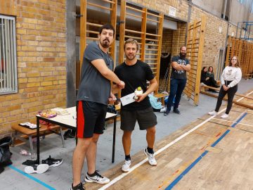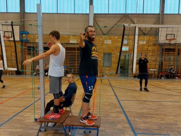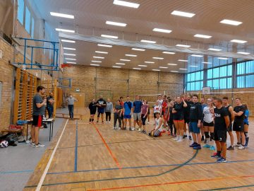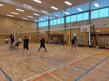 Eigentlich sollte das von unserem Jugendtrainer Christoph Sommer organisierte und von verschiedenen Jugendinitiativen wie Stadtmensch, Altenburg am Meer, Mach Halt und Fack unterstützte Turnier für Jugend-, Hobby- und Freizeitmannschaften auf dem Beachplatz stattfinden. Nachdem es im Vorjahr guten Anklang fand, hat es jetzt einen festen Platz in unserem Beach-Kalender eingenommen. Alle 12 gemeldeten Teams, jeweils aus 3 Spielern bestehend waren erschienen, eine Mannschaft sogar aus Erfurt, aber wegen Dauerregen musste kurzfristig in die Halle verlegt werden. Fleißige Helfer klebten Linien auf Beachfeld-Abmessungen und es konnte in 3 Gruppen losgehen, wobei pro Mannschaft immer mindestens ein Mädchen auf dem Feld stehen musste.